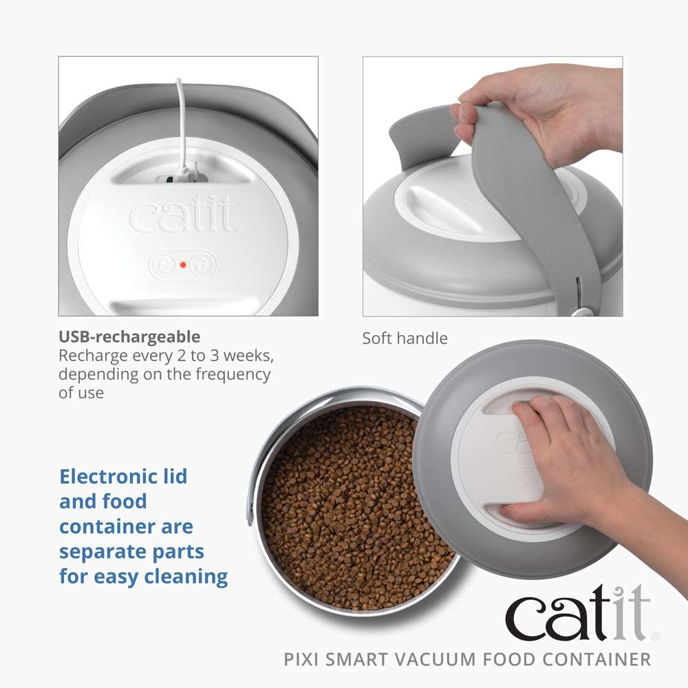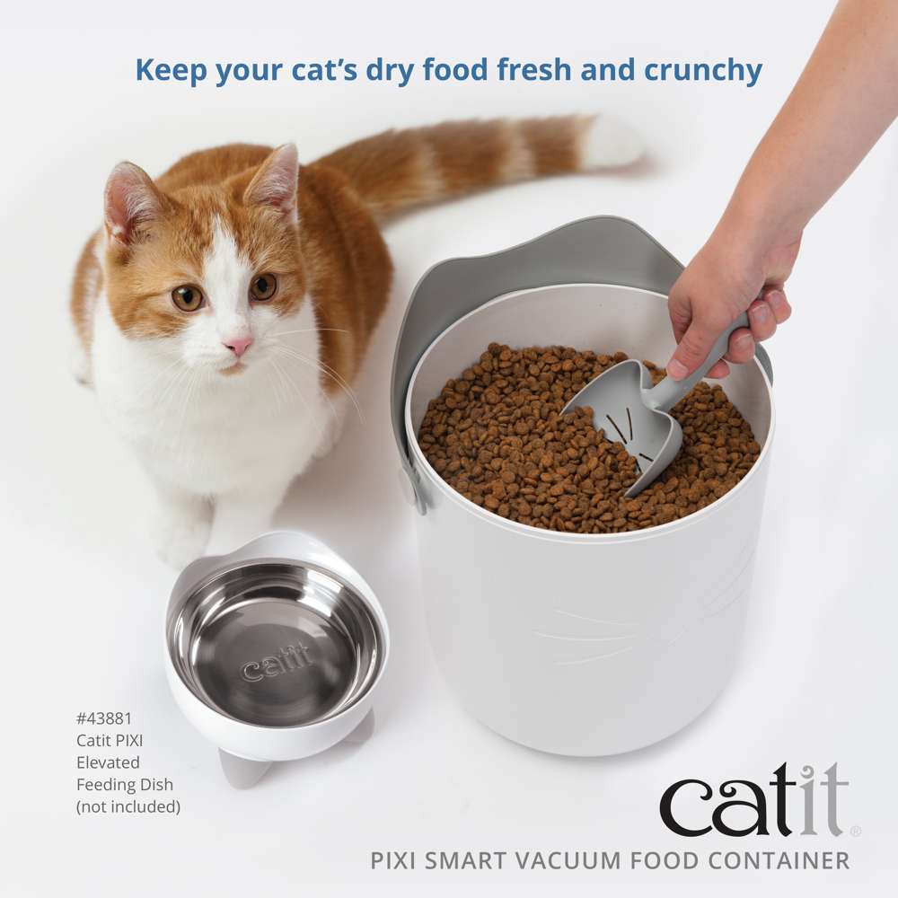 This smart cat food storage container with vacuum sealing technology shields your cat's kibble from air, light, moisture, vermin, and even clever cats and dogs.